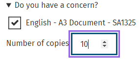 3. Type the number of copies you would like to order in the box under the resource, as per the image below.
