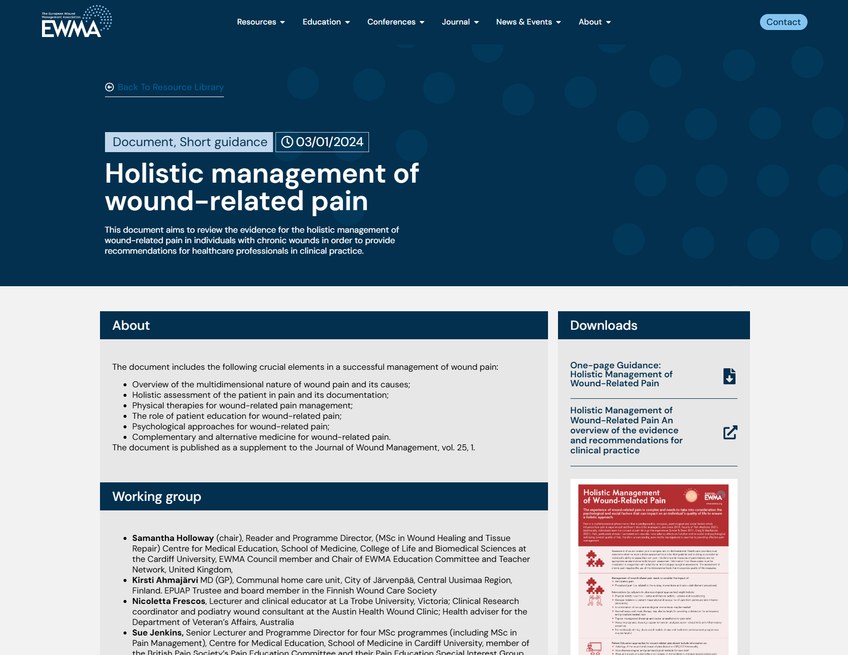 This resource provides guidance on managing wound-related pain through a holistic approach. It covers assessing and documenting pain, physical and psychological therapies, patient education, and complementary medicine options, focusing on the multifaceted nature of wound pain to improve clinical practice. This resource may apply to healthcare contexts outside of aged care. Please consider the applicability of this resource to your care setting.