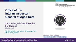 National Aged Care Provider Conference 2023 - Office of the Interim Inspector-General of Aged Care. Presentation by Ian Yates AM, Interim Inspector-General of Aged Care.