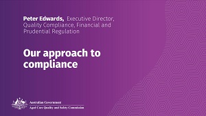 National Aged Care Provider Conference 2023 - Our approach to compliance. Presentation by Peter Edwards, Executive Director, Quality Compliance, Financial and Prudential Regulation